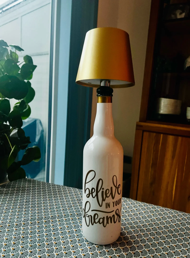 ¡Sí! La lámpara VAUTH está diseñada para adaptarse a la mayoría de las botellas estándar (vino, whisky, ginebra, tequila, etc.). El tapón universal garantiza una buena estabilidad y un aspecto impecable, independientemente de la forma o del color de la botella.