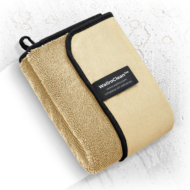 El paño WaliroClean™ puede absorber hasta 800 ml de agua, lo que lo convierte en el aliado ideal para secar superficies rápidamente sin dejar rastros.