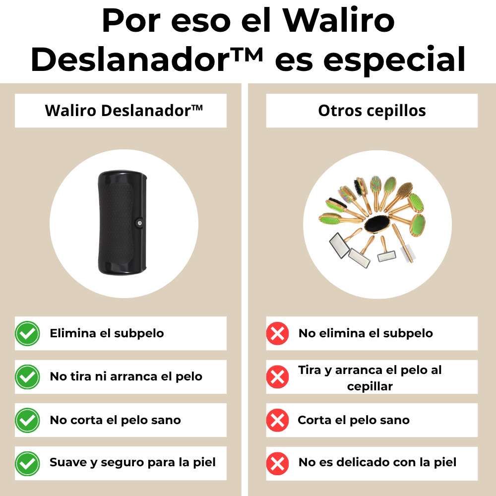 El Waliro Deslanador™ es el primer cepillo que elimina de forma eficaz tanto el pelo suelto como el subpelo, sin tirones ni molestias.